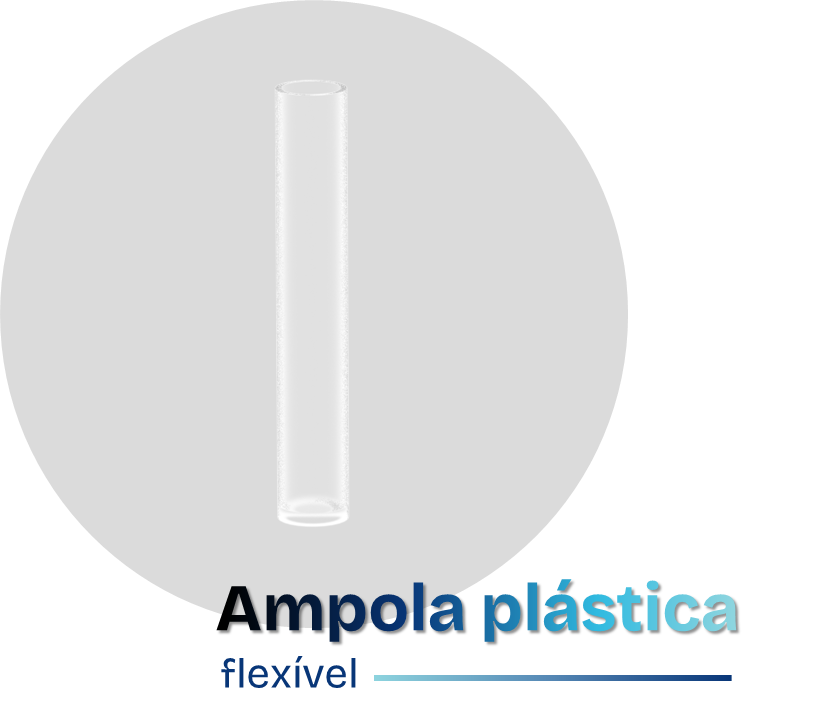 Envolve e protege a ampola de vidro. Sua estrutura maleável permite uma ativação precisa, segura e confortável, minimizando riscos de acidentes durante o manuseio.